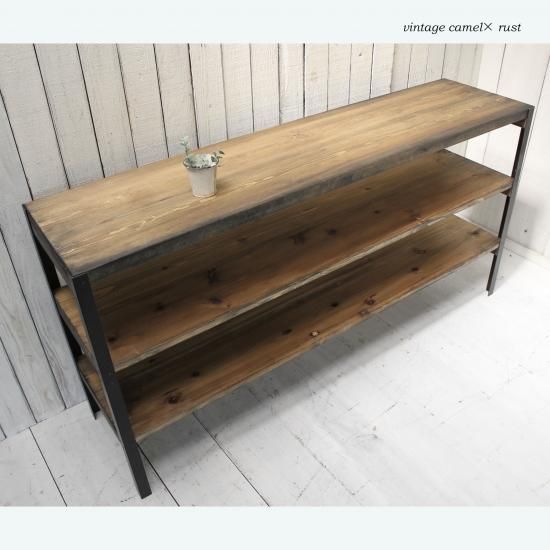 このラックは、頑丈なアイアンフレームと無垢材のシェルフが特徴で、お部屋に温かみとモダンさをプラスしてくれます。